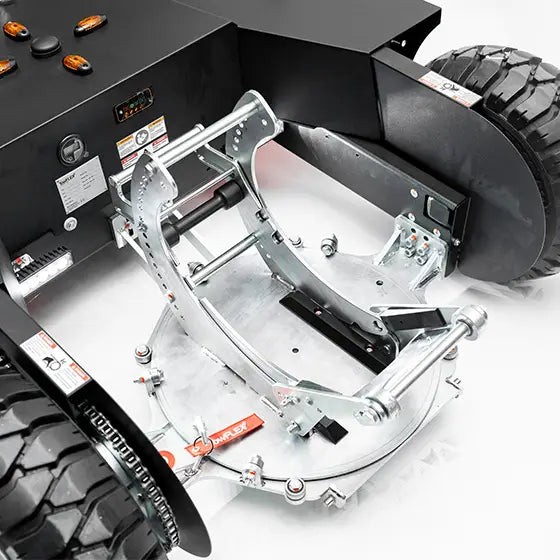 360° mechanical turntable – automatically keeps the bow wheel straight, lockable if required